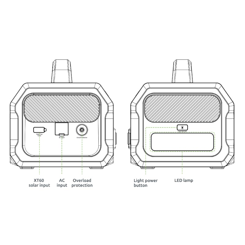 - Multiple input charging options – draw power from your car, solar panel, or from wall sockets