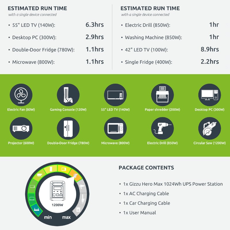 - Gizzu Hero Max 1024Wh UPS Power Station x1